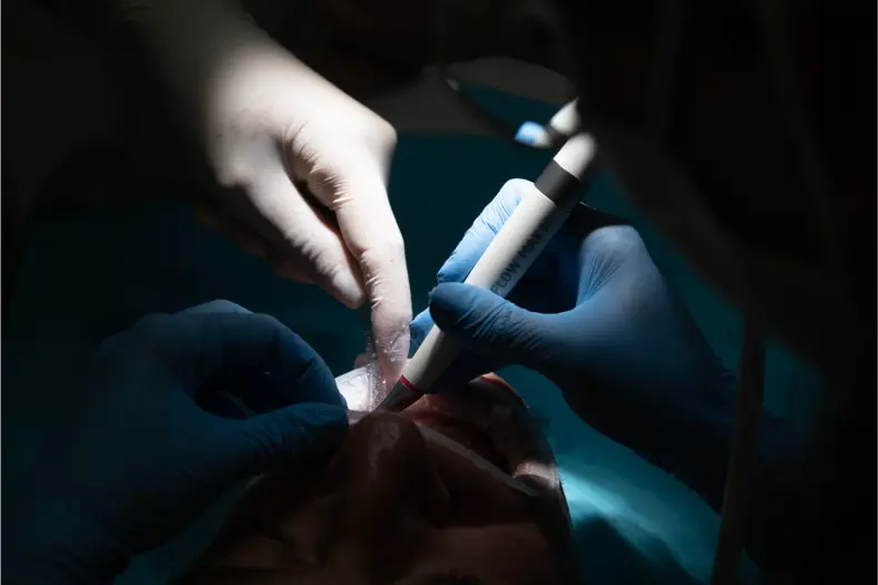 • Paciente en silla del dentista recibiendo tratamiento de odontología conservadora en ronda